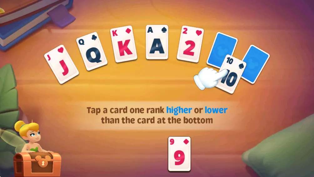 1. 创新玩法:在三峰纸牌玩法基础上,加入关卡挑战与迪士尼风格元素,收集特定点数纸牌清空桌面,过程简单又有趣。