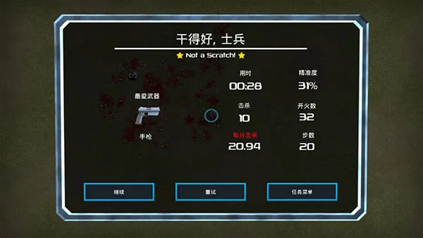 1. **画面升级**:2D俯瞰视角射击游戏,画面效果绚丽依旧,血流成河的场面更加震撼。战斗气势十足,敌人一波波袭击,战场范围广阔。虽角色体积小,但也增添了别样风格。