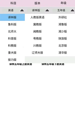 1、软件提供了各种版本的五年级上册和下册英语,如译林版、人教版英语、外研版等;