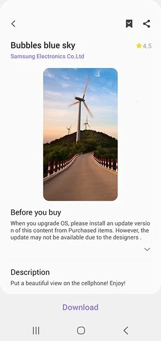 三星主题是三星开发的移动主题应用,提供多样主题风格与壁纸。有大量免费主题,每周更新。能换壁纸、定制图标、设置字体,资源丰富免费,可下载喜欢内容,方便个性化手机界面。