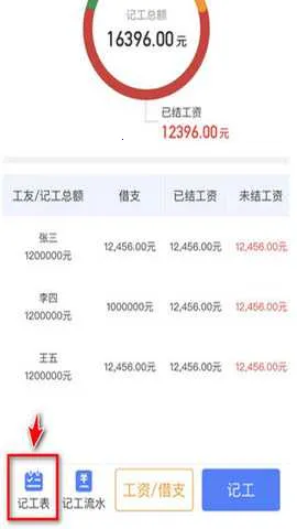 3、在记工记账模块中找到记工表并进入。