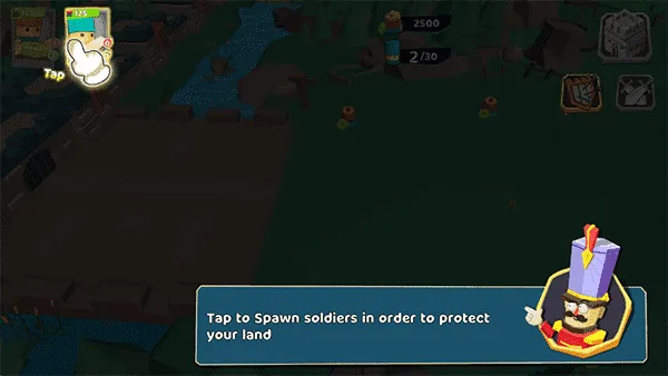 1、进入游戏后,点击左上角的生成士兵来保护你的土地;