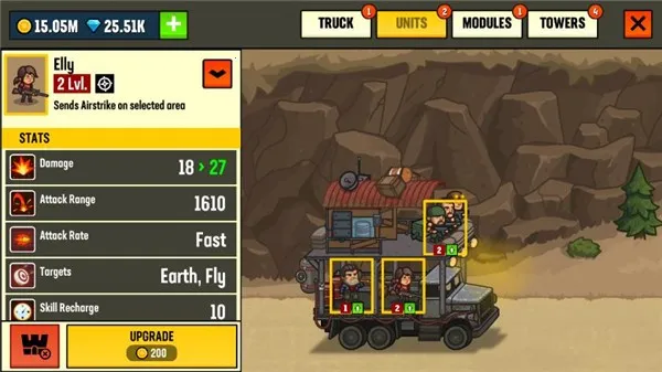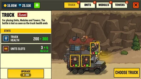 你可以建造和升级建筑物,与盟国一起拓展土地,提升战斗力。还能使用策略,招募英雄角色分配到卡车上增加战力,部分英雄有专属技能,能量条蓄力完毕点击图标就能释放。通过升级卡车,提升英雄等级,增加卡车位置数量。