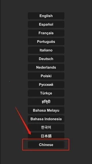 切换中文也很简单,打开游戏点击 settings,接着点语言里的 english 选项,选 Chinese 后关闭界面就行。