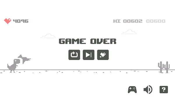 3、点击界面中央的播放按钮即可启动游戏,当遇到障碍物时,只需向上滑动屏幕,小恐龙便会跳跃以避开。