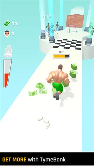 独特场景体验:玩家化身肌肉猛男,在45度斜角立体且明亮逼真的场景里,凭借操作穿越巧妙设计的障碍,感受别样的跑酷乐趣。