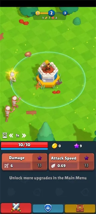 2、在这个魔法世界中,你需要不断的击败邪恶的怪物,并通过升级弓箭手的攻击伤害,击败更加强大的怪物;