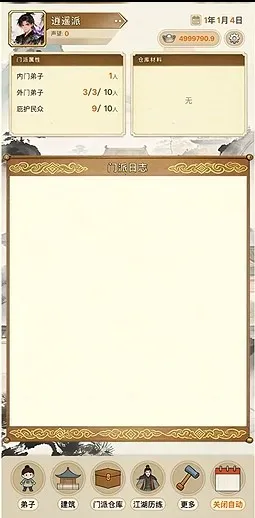 1. 弟子外出历练有惊喜。派遣内门弟子闯荡江湖,挑战历练任务,能带回银两、稀缺材料、武学残篇等丰厚奖励,助力门派跃升。